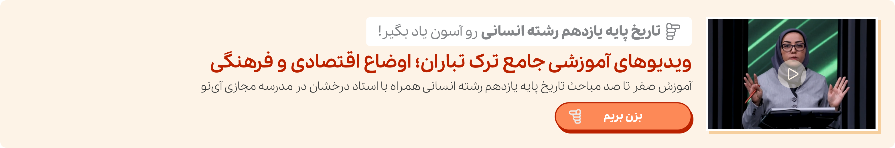 تهیه خلاصه ایران در دوران غزنوی سلجوقی و خوارزمشاهی تاریخ ۲ به شما در یادگیری این مطالب کمک میکند و به مرورهای شما سرعت میبخشد. برای استفاده از فیلمهای آموزشی باید به سایت مدرسه مجازی آی نو بروید. در آنجا میتوانید به صورت نامحدود از فیلمهای آموزشی استفاده کنید.