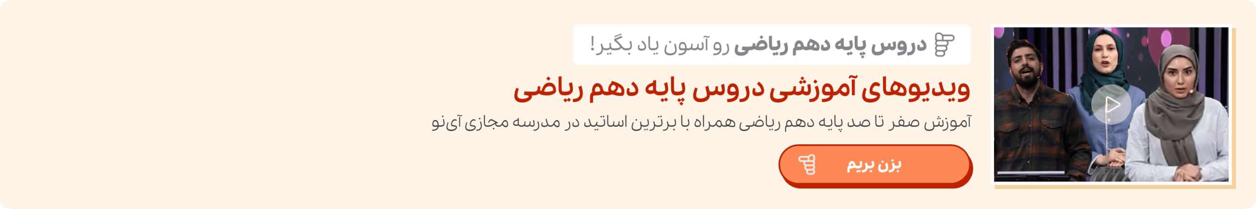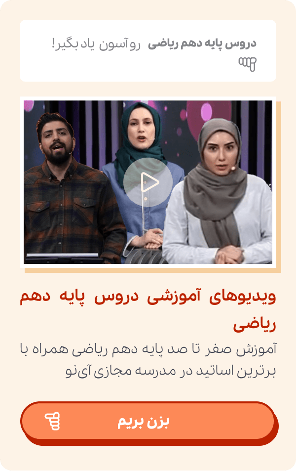 همچنین جزوه خلاصه نکات درسی، خلاصه نکات کنکوری و ویدیو های آموزشی نکته و تست دهم ریاضی نیز در کنار پکیجهای مختلف آموزشی، که در مدرسه مجازی آی نو ارائه میشود نیز بهره بگیرید.