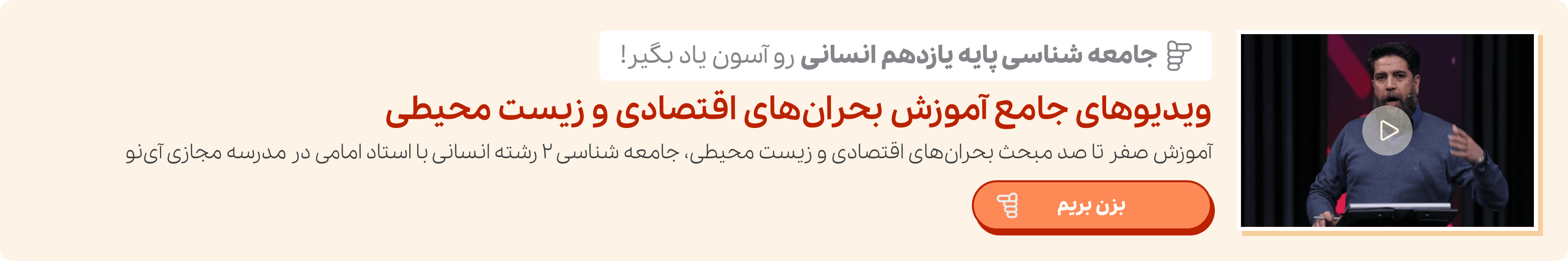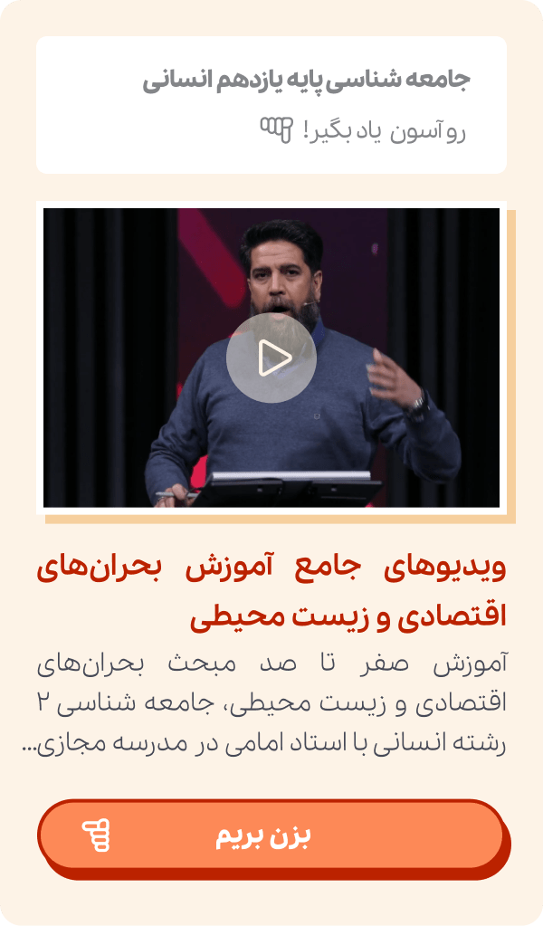 کمک گرفتن از ویدیوهای آموزشی درس بحران های اقتصادی و زیست محیطی جامعه شناسی ۲ بازدهی شما را بسیار افزایش میدهد. اگر به روش مطالعه شاگردان برتر نگاهی بیندازید مشاهده میکنید که یکی از برنامههای مطالعاتی ثابت آنها تهیه و تماشای این فیلمهای آموزشی بوده است. تمام دانش آموزان در سراسر کشور این امکان را دارد تا به صورت نامحدود از این فیلمهای آموزشی استفاده کنند.
