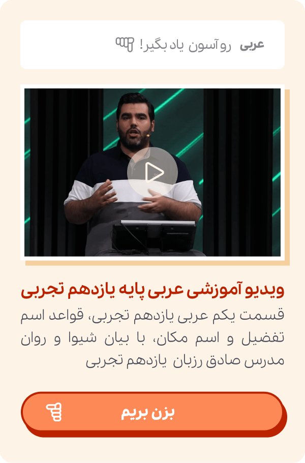 جدیدترین روش یادگیری عربی یازدهم تجربی که میتواند تحول بزرگی در روند مطالعه شما ایجاد کند، استفاده از ویدیوهای آموزشی مدرسه مجازی آی نو است. این ویدیوها با برنامهریزی دقیق و محتوای استاندارد، یادگیری صحیح عربی یازدهم تجربی را برای دانشآموزان فراهم میکنند تا از سردرگمی در مطالعه بخشهای مختلف کتاب درسی رهایی یابند و به صورت گام به گام با مفاهیم، قواعد و تمرینها آشنا شوند.