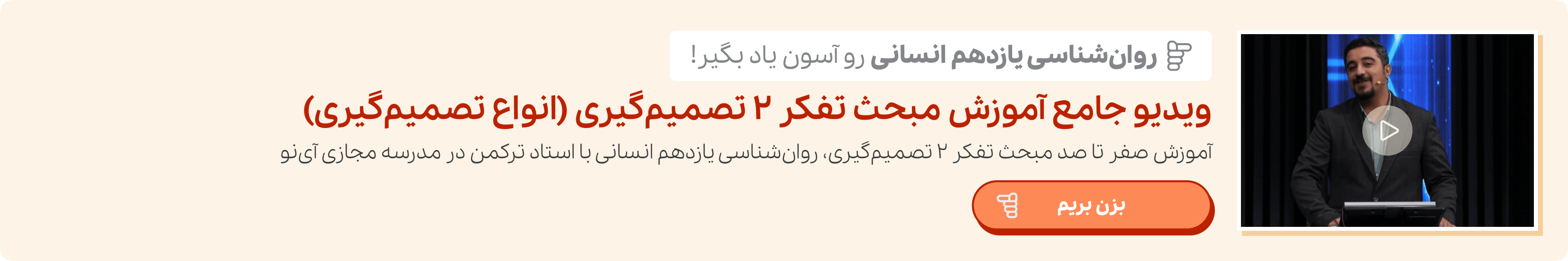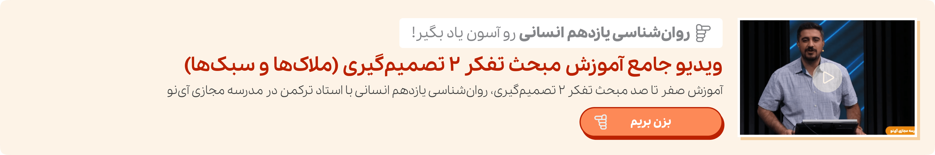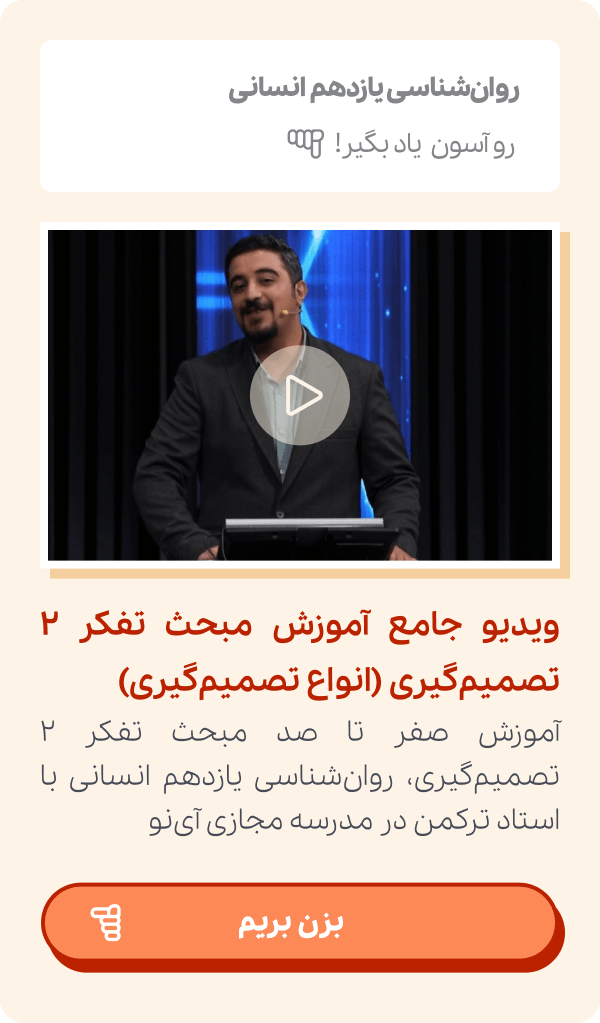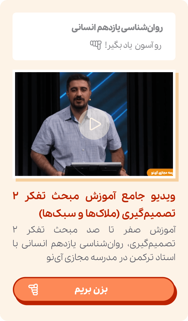 با آموزش ویدیویی تفکر ۲ تصمیم گیری روان شناسی مدرسه مجازی آی نو می‌توانید با مهم‌ترین نکات این مبحث به شیوه‌ای جذاب آشنا شوید.