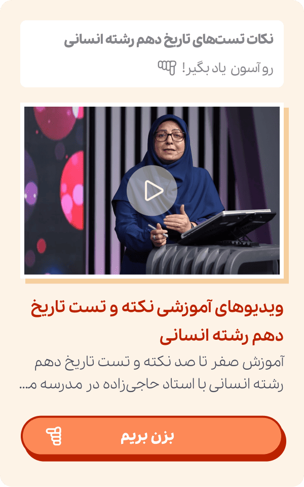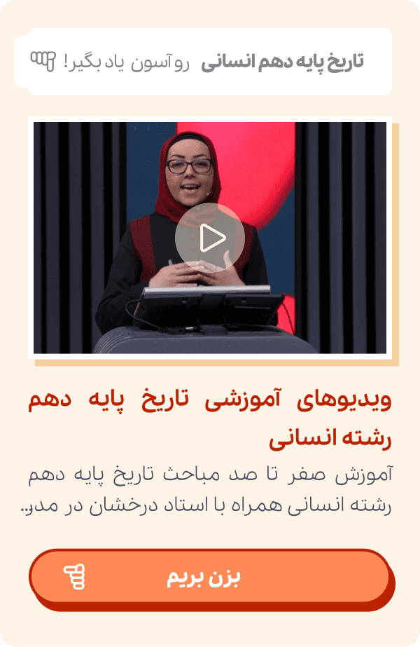 یکی از روشهای موثر برای مطالعه تاریخ دهم انسانی، استفاده از ابزارهای کمک آموزشی است. یکی از بهترین و پرکاربردترین ابزارهای کمک آموزشی، ویدیوهای آموزشی است که به دانشآموزان در درک بهتر مطالب کمک بسیار زیادی میکند. استفاده از ویدیو آموزشی تاریخ دهم انسانی به شما کمک میکند تا با تمام نکات و مطالب مهم درسی آشنا شوید و بتوانید علاوه بر یادگیری دروس، به مرور کردن آنها هم بپردازید.