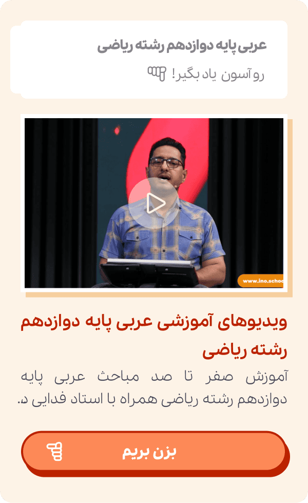 به نحوه نوشتن کلمات و درست نویسی آنها هم توجه کافی داشته باشید. بخش قواعد هم بسیار مهم است که باید با تکرار و تمرین در این بخش به تسلط برسید. اگر به دنبال روشی برای یادگیری آسان عربی دوازدهم ریاضی هستید، استفاده از ویدیوهای آموزشی میتواند بسیار مفید باشد.