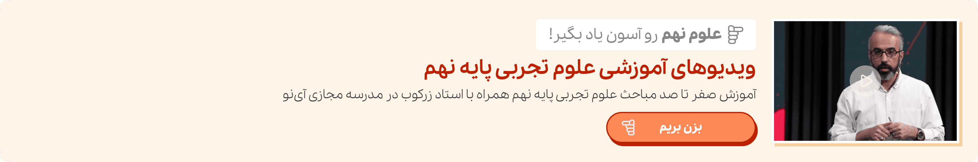 بهترین راهی که شما میتوانید از آن استفاده کنید و بدون در نظر گرفتن زمان و مکان با این اساتید، کلاس داشته باشید، استفاده از ویدیوهای آموزشی است. در این ویدیوها اساتید به طور کامل به تدریس مباحث علوم پرداختهاند و شما میتوانید با استفاده از این فیلمهای آموزشی، در منزل خود و بدون استرس علوم بخوانید.