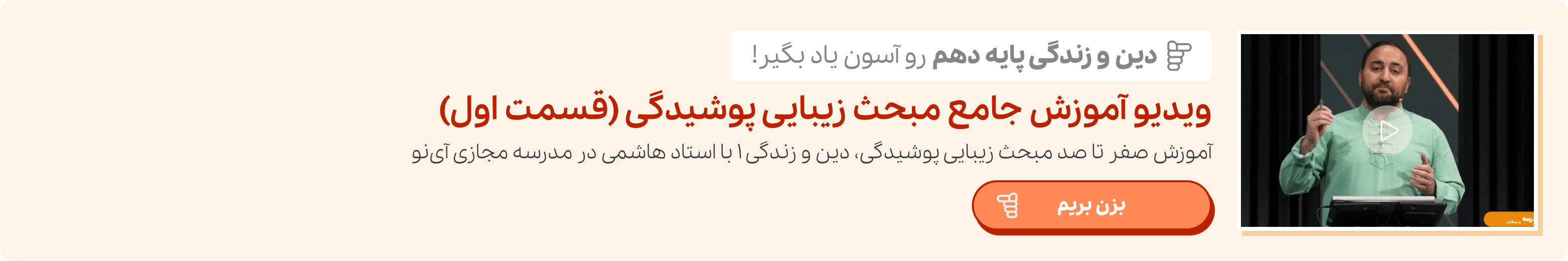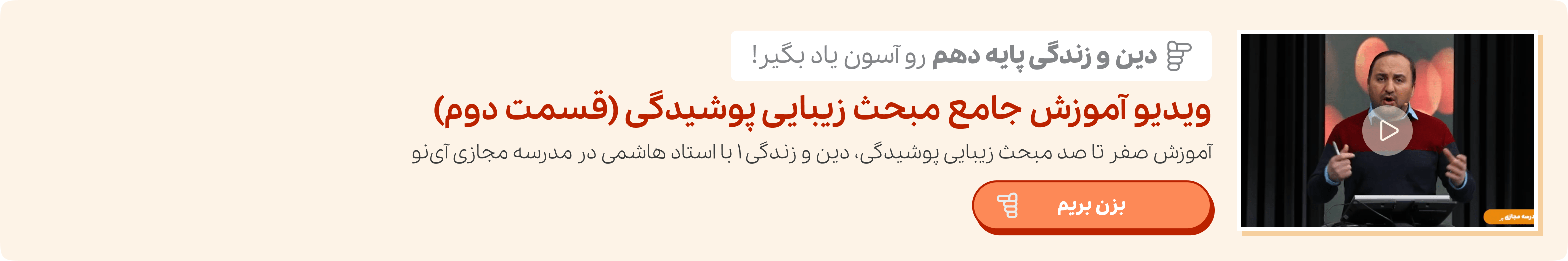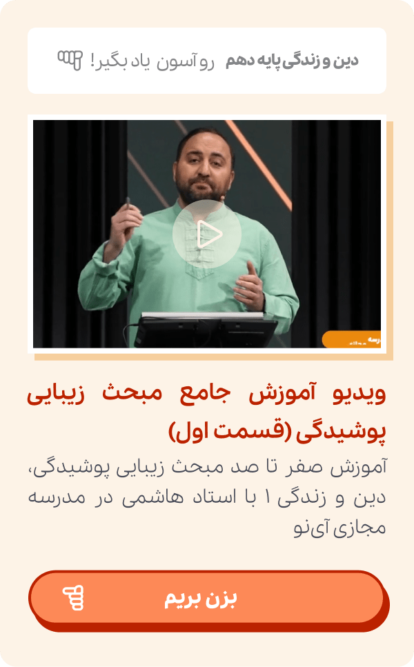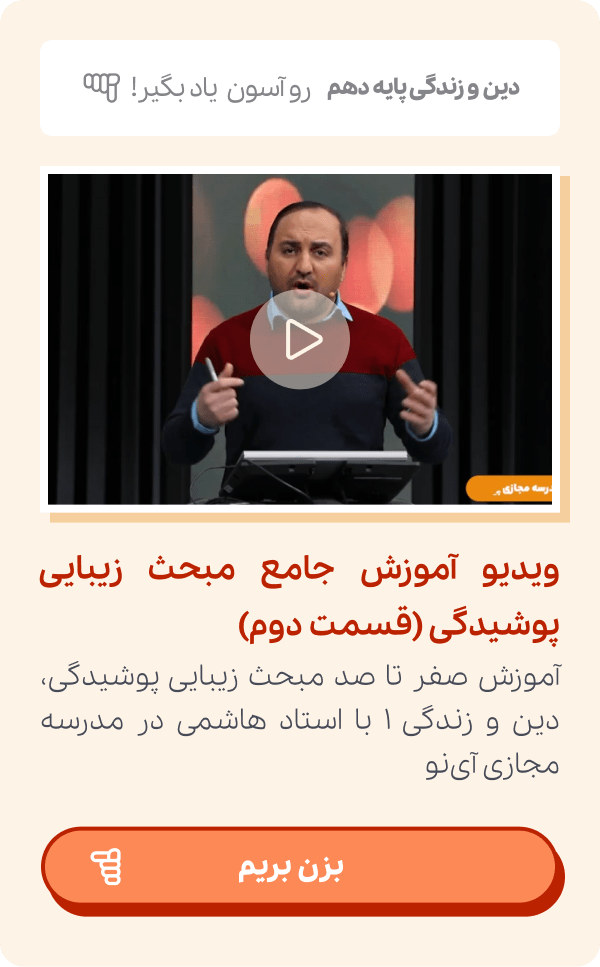 شما میتوانید بارها و بارها درس زیبایی پوشیدگی دین و زندگی ۱ را مشاهده کنید و بعد از یادگیری هر بخش به سراغ بخش بعدی بروید. به این شکل مطمئن باشید در این درس نمره عالی کسب خواهید کرد.