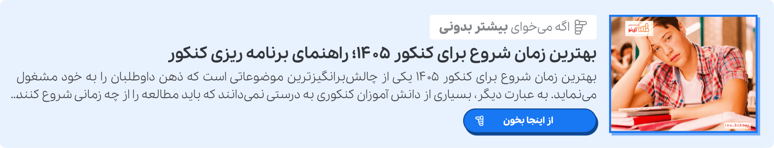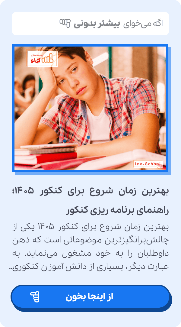 در این مقاله از مدرسه مجازی آی نو، تلاش شده است تا مسیر واقعی و عملی قبولی در کنکور ۱۴۰۵ در یک ماه را با جزئیات دقیق و کاربردی در اختیار دوطلبان این آزمون مهم قرار دهیم تا این عزیزان بتوانند در مدت زمان کوتاه، روی مباحث مهم و پرتکرار تمرکز نمایند و با استفاده از یک برنامه فشرده و در عین حال اصولی، استرس خود را مدیریت کرده و به نتیجه فراتر از انتظار خویش برسند. تا پایان این مقاله با ما همراه باشید.
