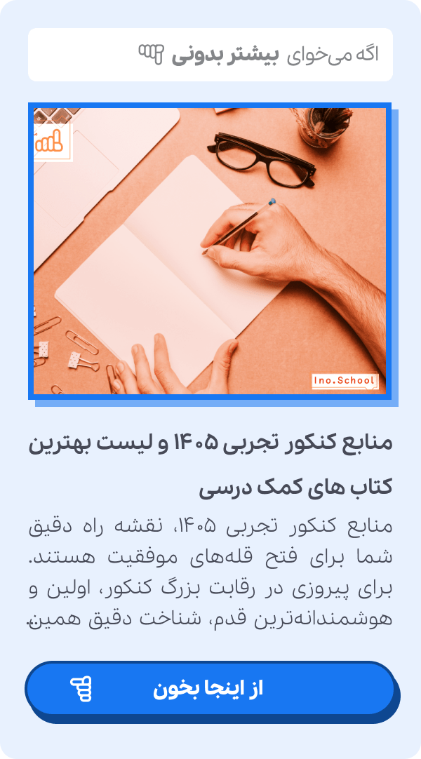 علاقهمندان میتوانند برای کسب اطلاعات کامل و دقیق در مورد کتابهای مورد نیاز و بهترین روشهای مطالعه، به مقاله تخصصی منابع کنکور زبان ۱۴۰۵ در سایت مدرسه مجازی آی نو مراجعه کرده و راهنمای جامعی در این زمینه دریافت نمایند. این اقدام به شما کمک میکند تا همزمان با آمادگی برای منابع کنکور ریاضی ۱۴۰۵، برای آزمون زبان نیز به بهترین شکل آماده شوید.