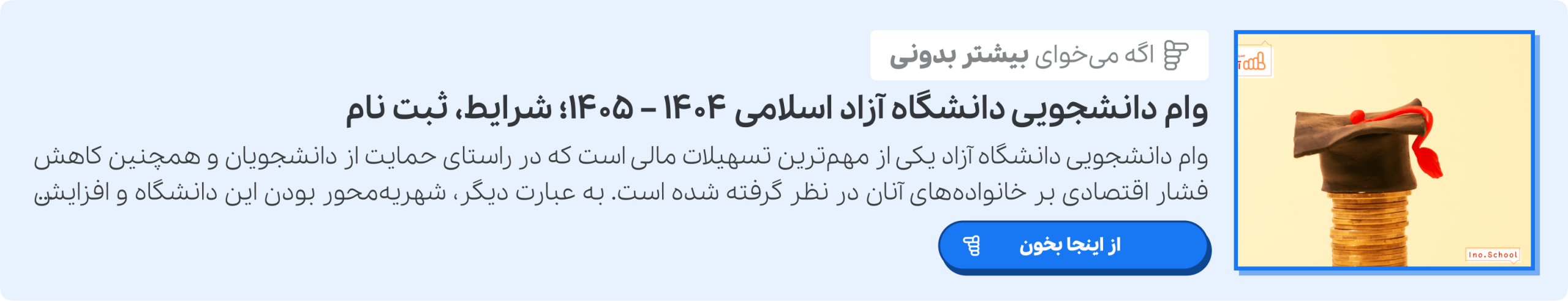 قابل ذکر است که ویدیوهای آموزشی آی نو به شکلی طراحی شدهاند که نه تنها برای آموزش مفهومی کاربردی هستند، بلکه برای مرور و تقویت مطالب درسی بسیار کارآمد و اثربخش میباشند. همچنین در این ویدیوها، برترین و مجربترین دبیران کشور، مفاهیم درسی را با زبانی ساده، روان و قابل فهم به دانش آموزان عزیز، آموزش میدهند. دانشآموزان نیز میتوانند با صرفه هزینهای کاملاً مقرون به صرفه اشتراک آی نو را تهیه نموده و بدین ترتیب به بانک گستردهای از تمرینات، نکات کلیدی و تکنیکهای طلایی، نمونه سوالات امتحانی و جزوات کامل دروس خویش بدون محدودیت دسترسی داشته باشند. برای کسب اطلاعات راجب وام دانشجویی وزارت بهداشت ۱۴۰۴ – ۱۴۰۵ بر روی لینک کلیک کنید.