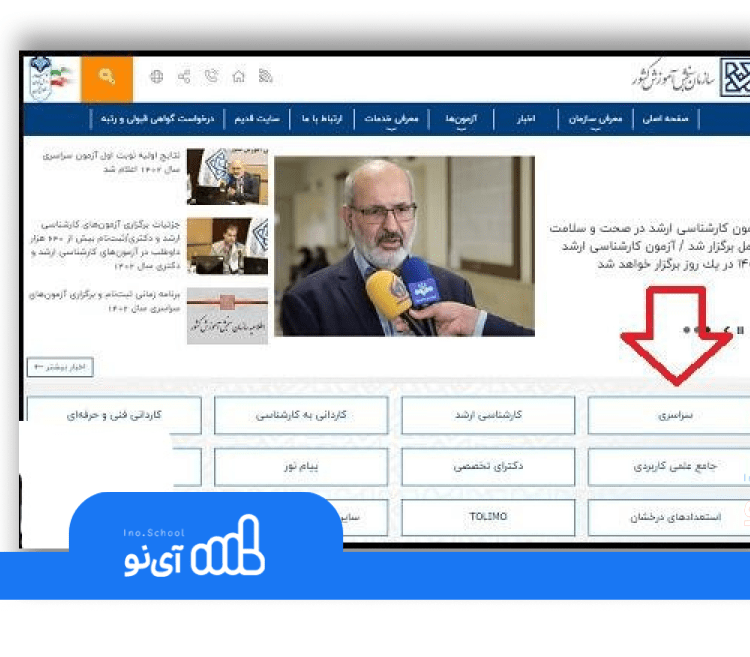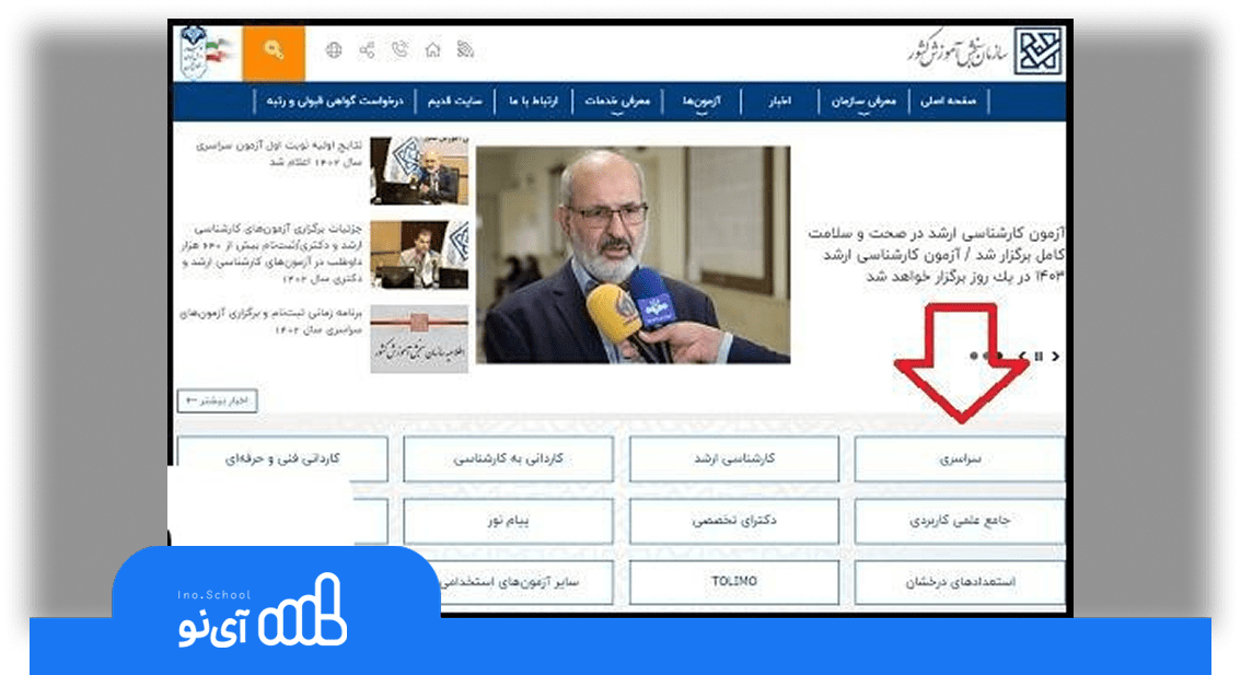 - ابتدا به وبسایت رسمی سازمان سنجش به آدرس sanjesh.org مراجعه کنید.