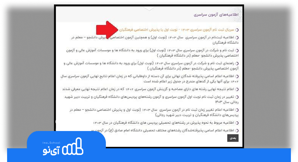 قبولی قطعی کنکور با آی نو