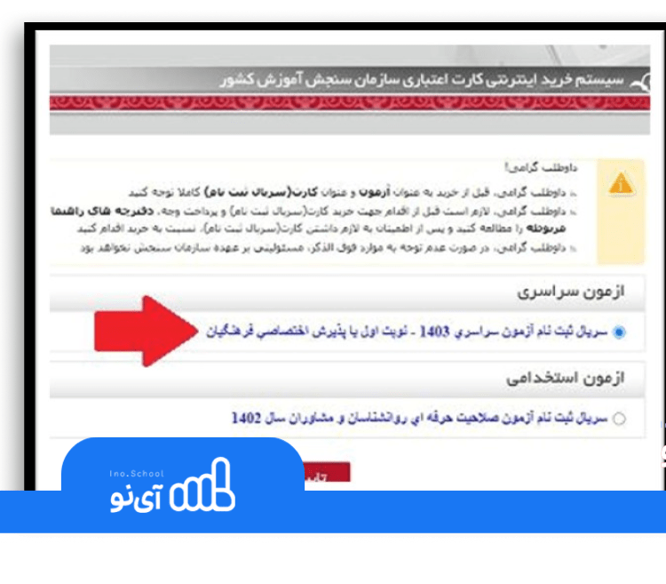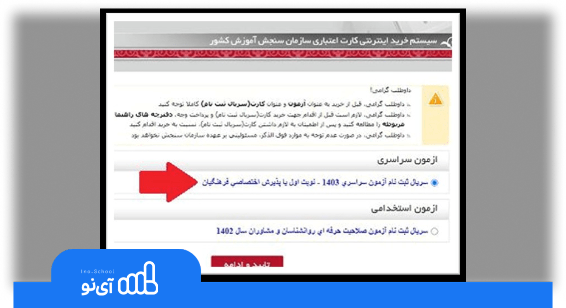 راهنمای تصویری نحوه خرید سریال ثبت نام کنکور ۱۴۰۵