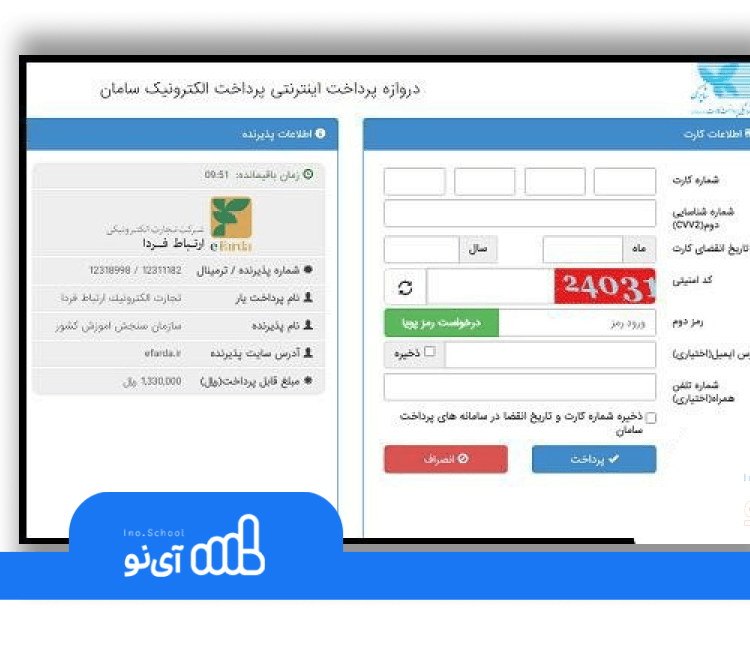 - پرداخت آنلاین هزینه: سرانجام، به صفحه درگاه پرداخت هدایت میشوید. در این بخش، با وارد کردن اطلاعات کارت بانکی عضو شبکه شتاب خود شامل شماره کارت، رمز دوم پویا، تاریخ انقضا و CVV2، میتوانید هزینه ثبت نام کنکور ۱۴۰۵ را پرداخت نمایید.