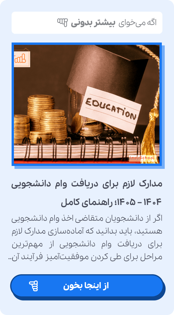 در این مقاله از مدرسه مجازی آی نو، به صورت جامع و کامل به بررسی جزئیات وام دانشجویی دانشگاه آزاد ۱۴۰۴ – ۱۴۰۵ خواهیم پرداخت تا دانشجویانی که متقاضی دریافت وام از دانشگاه آزاد اسلامی هستند، با آگاهی بیشتر قدم در این مسیر بگذارند و با کسب اطلاعات دقیق‌تر، فرآیند آن را بدون چالش طی نمایند. تا پایان این مقاله با ما همراه باشید.