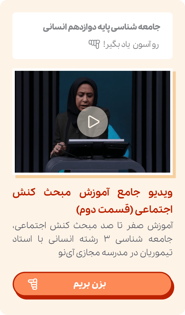 اگر میخواهید برای یادگیری این مطالب از فیلمهای آموزشی استفاده کنید باید به سایت مدرسه مجازی آی نو مراجعه کرده و بعد از انتخاب سال تحصیلی و درس جامعه شناسی ۳ میتوانید به صورت نامحدود از فیلمهای آموزشی استفاده کنید. همچنین به شما توصیه میکنیم خلاصه کنش اجتماعی جامعه شناسی ۳ را در یک دفتر بنویسید و در بازه های زمانی مرتب مرور کنید.