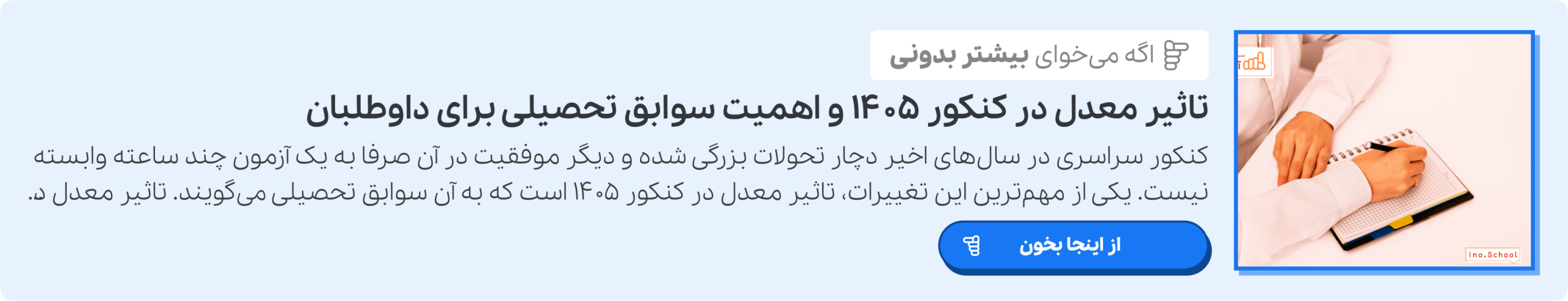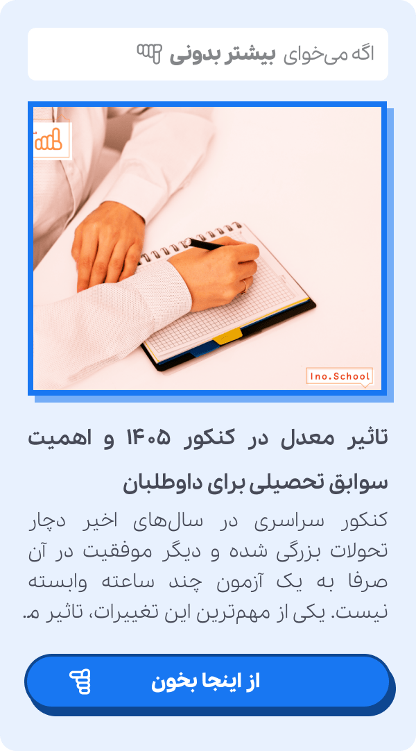 با وجود داوطلبان کمتر، کسب موفقیت در کنکور هنر ۱۴۰۵ به مدیریت زمان دقیق و تسلط کامل بر سوالات تخصصی وابسته است. برای غلبه بر این چالش، مدرسه مجازی آی نو، به عنوان اولین و پیشروترین مدرسه مجازی کشور، بهترین اشتراک کنکور برای کنکور هنر ۱۴۰۵ را ارائه می‌دهد. برای آکاهی از منابع کنکو هنر ۱۴۰۵ کلیک کنید.