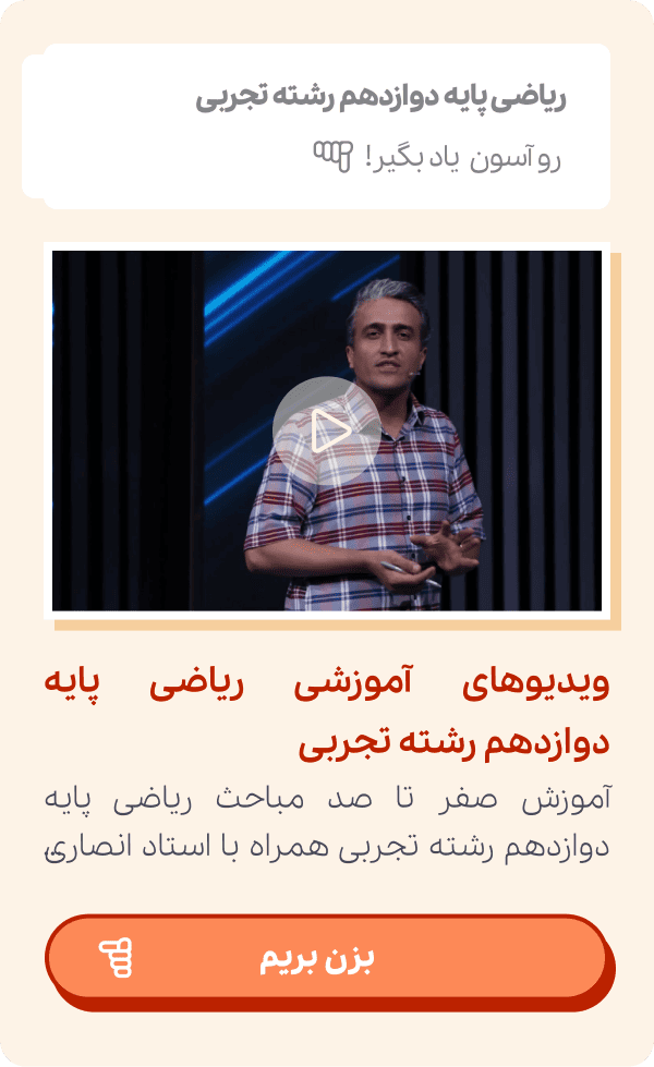 - اگر مطلبی را یاد نگرفتهاید و یا نیاز به آموزش دیدن دارید، صبر نکنید! در اولین فرصت از ویدیو آموزشی ریاضی دوازدهم تجربی استفاده کنید.