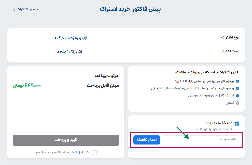 - بعد از وارد کردن کد، روی “اعمال تخفیف“ کلیک کن.