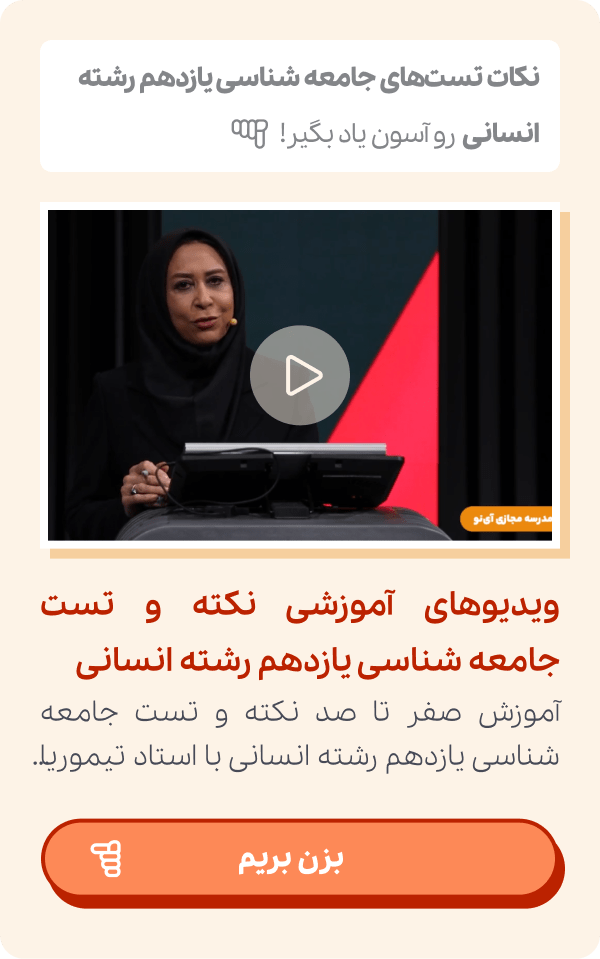 برای مطالعه این کتاب، ترکیبی از روشهای مختلف میتواند مؤثر باشد. ابتدا با مرور دقیق مطالب کتاب و یادداشتبرداری از نکات مهم شروع کنید. سپس از آموزشهای ویدیویی استفاده کنید. دانلود کتاب جامعه شناسی 2 رشته انسانی به شما امکان میدهد هر زمان که نیاز داشتید، به متن کتاب رجوع کنید. علاوه بر این، ویدیوهای آموزشی سایت مدرسه مجازی آی نو میتوانند توضیحات بیشتری درباره مفاهیم پیچیدهای مانند ساختارهای اجتماعی و نهادها ارائه دهند. این روشها به شما کمک میکنند تا مطالب را بهصورت عمیقتر درک کنید و برای امتحانات آمادهتر شوید.